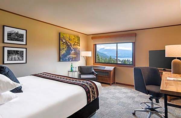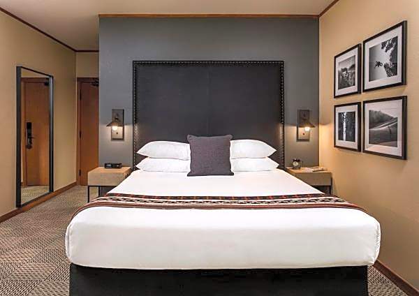 This room features air conditioning, a gas fireplace, a seating area, a mini refrigerator and a tea/coffee maker.